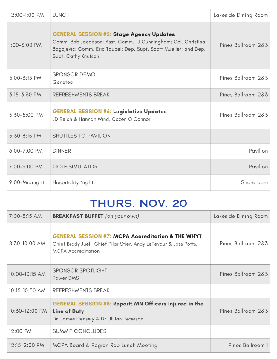 This 2.5-day conference brings together law enforcement leaders from across Minnesota for focused leadership training, meaningful peer collaboration, and professional development.